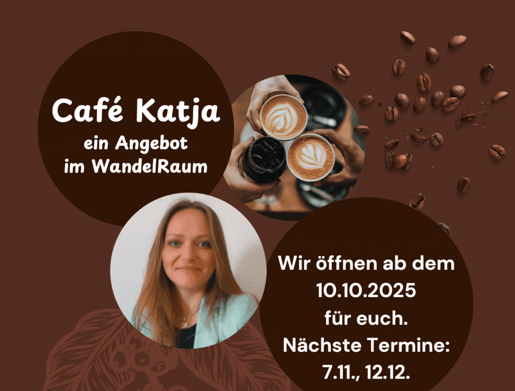 Liebe alle, am 10.10. öffnet Café Katja zum ersten Mal seine Türen. Bei uns bekommt ihr besondere Kaffeespezialitäten, selbstgemachten Kuchen und andere Leckereien. Katja bereitet alle Spezialitäten für euch frisch zu und freut sich, euch von 16–18:30 Uhr zu begrüßen. Bei uns bekommt ihr aber nicht nur leckeren Kaffee, sondern auch ein offenes Ohr für eure Anliegen; ihr bekommt Blumenschmuck – Sträuße, Gestecke, Kränze und Weiteres für alle Anlässe (auf Vorbestellung) – sowie Rat und Tat bei kleinen Reparaturprojekten bei euch zu Hause, die wir bis zum nächst stattfindenden Termin erledigen.